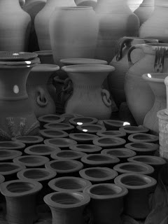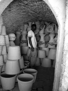 I was practically sitting on my hands not to jump on one of the kick wheels and have a try of the local clay which was a beautiful yellow ochre color and quite plastic. I think I could have been left behind here and lived my life quite happily.