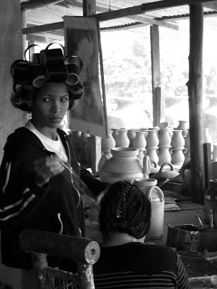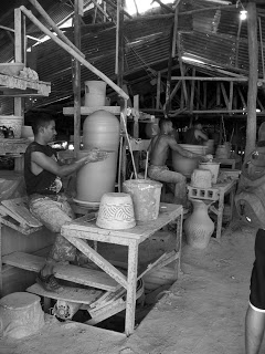 The tasks were all divided between men and women, the men doing all the harder labour such as crushing and filtering the clay, throwing the pots and loading the kilns. The women’s roles centered around altering the thrown forms, making attachments and painting or glazing the wares, mind you not many of the pots had glaze, most were painted with acrylic washes as the main product of the buisness was planters and garden pots.