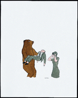 One of my other favorite 2-d artists has got to be Marcel Dzama, whose a Canadian boy from Winnipeg that’s had huge success in the American market. He makes lovely little quiry drawings (and paints as well), some of which are tinted with root beer! yummy!