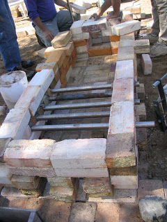 So the building began by about 11am and with a good break for lunch we were finished construction by around 3 that afternoon – now that’s my kind of kiln building! Mind you we had a lot of hands, but still, as much as I love a beautifully constructed kiln, my patience and my back can’t handle all the work. So a one day kiln was just my speed.