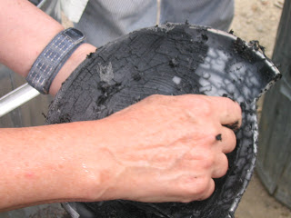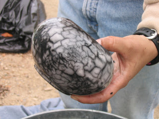 The workshop participants also got the chance to pit fire and raku. While I fondly remember back in undergrad my friend Jessie and I building our first kiln, a raku that we actually got a substantial amount of work through before it started to fall apart, it’s been ages since I’ve done a raku. It’s not that I’m not an admirer of raku work, it just that it doesn’t quite fit the work I’ve been producing over the last few years. But I was introduced to a new technique for raku this weekend that I’ve never seen before – chip slip. I was quite inspired…maybe there will be more raku in my future.