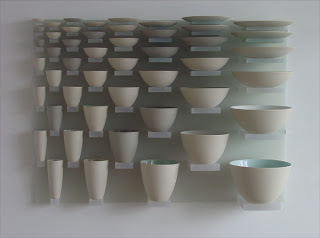 I’ve long admired the works of both artists, how they interact with the rich history of ceramics and art to produce works that are not only conceptually strong, but technically proficient as well. For without technical proficiency the works would suffer visually. Both have worked with the medium in an ephemeral manner allowing for the the transformation of the material either physically, or it’s transformation while in exhibition, inform and guide the work and audience. An example would be Cushway’s Sublimation piece, in which the disintegration of the object, rather than the static permanence of the object is that which speaks volumes. And Twomney has allowed the audience the control of the work, through their engagement in theft of the work to give the piece meaning in Trophy (2006), wherein the gallery contained 4000 Wedgewood produced Bluebirds, which the public were encouraged to covet and take.