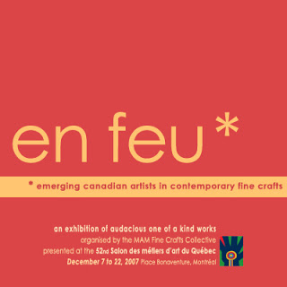The MAM Fine Crafts Collective, in association with the Conseil des métiers d’art du Québec, announces a call to artists for en feu* emerging canadian artists in contemporary fine crafts, a juried exhibition open to emerging fine crafts artists across Canada having no more than 5 years experience as a professional artisan. The exhibition (whose title means “on fire”) will be held December 7 – 22, 2007 at the Salon des Métiers d’art du Québec, at Place Bonaventure in downtown Montréal, as part of Craft Year 2007 and in celebration of the MAM collective’s 5th anniversary.
