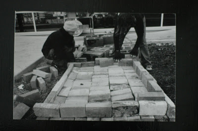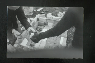 These pictures are of the first kiln I ever tried to build, must have been over ten years ago now. It’s embarrassing to even show you (and now I question why I even am?) The first shows our pathetic attempt at working with the worst of discarded kiln bricks to build the floor of our raku kiln. Wobbly much? It makes me laugh out loud!