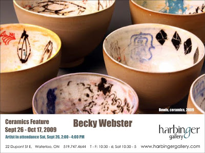 Becky Webster graduated in 2001, majoring in ceramics in the Craft and Design program at Sheridan College, in Oakville, Ontario. Upon graduation, Webster set up studio practice and also began a managerial position at S&S Pottery Supplies, a position she maintains today. In addition to being included in a Harbinger group exhibition of clay in 2008, Becky has recently had a solo exhibition and has been featured in the “Canadian House and Home” magazine. Her work can be found in galleries all over Ontario.