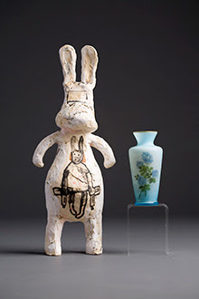 Australian ceramics artist Steve Davies has won the 6th International Ceramics Biennale in Austria with his work, Alone – Garden Psychopath a handbuilt white cyber rabbit with found vase.