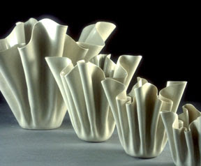 “I’m Carol Barclay, from Rochester, NY, and I’ve been playing in the mud for almost 30 years! My studio overlooks my large perennial and annual garden, and the botanical influence is strong in my work.I see my porcelain forms as freezing a moment of fluidity. Each hand-built piece involves rolling out thin sheets of porcelain, coaxing the clay into shape, and tending the work through weeks of careful drying, burnishing, and carving. The last steps of glazing and firing in an electric kiln finally yield the finished piece.