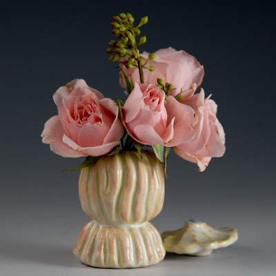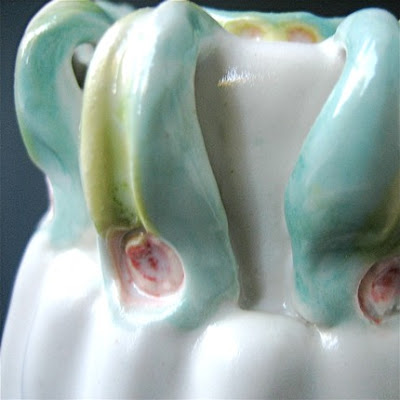 Well today just happens to be the perfect day for posting some gorgeous pots with flowers and botanical themes, as where I live we’re in the midst of an early deep freeze which is making most of us contemplate moving to warmer climate (any one got a job for me??? anyone???) My thanks to Carol for at least warming up my computer screen! Enjoy her beautiful work and words: