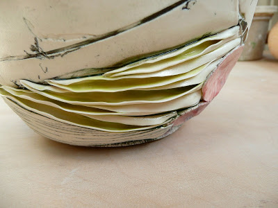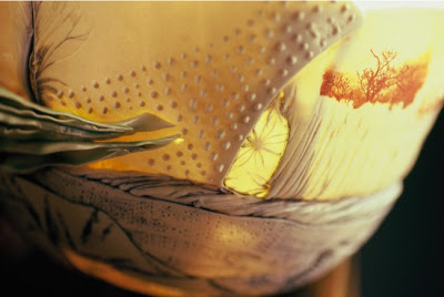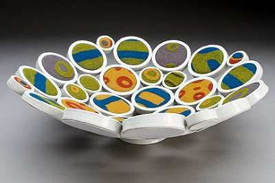 Since the mid-1990s I have been creating one-of-a-kind, slab-built ceramic pieces that address my experience of the “natural” world and notions of femininity. The pieces are finely constructed to emphasize porcelain’s tendency towards translucence, highlighting the object’s fragility and sensuousness. I combine organic forms with other natural materials to create a quilt-like montage. The forms – bowls, vases, and other vessels – often hover on the edge of functionality, inviting and undermining practical use while compelling the viewer to slow down and find pleasure in the forms’ abundant small details.”