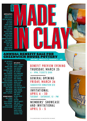 Made in Clay (MIC) is New York’s annual, hotly anticipated ceramics event: a pottery sale, an exhibition, a celebration, and a fundraiser. The 2010 program will center on the notion of community and service in Greenwich Village and beyond. Made in Clay has always been about Greenwich House Pottery and all of the community programs it coordinates. These include everything from youth-directed and senior-citizen initiatives to scholarships for students. But this year in particular, with almost all nonprofits finding their coffers strained, the time proved right to reemphasize the need for neighborhood cohesion and ‘giving back.’