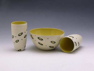 Rachael primarily works with slip cast objects from plaster molds, in both sculptural and functional manners, emphasizing the aesthetic experience through form, line movement and colour.