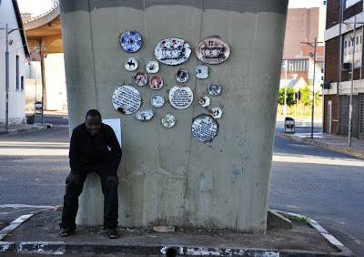 The intervention consists of ceramic sculptures placed in an urban liminal space, under a bridge. The very nature of a bridge permits its symbolic use: it is a structure that joins two otherwise separate pieces of land, yet at the same time enhances their separateness. One can travel across a bridge, but while on it the traveller is neither in one place nor the other, thus a bridge is a quintessentially liminal object. In Johannesburg many displaced, migrant and homeless people live under bridges they survive without electricity and water it is their ‘home’. I will populate the space with objects that reflect my own liminal migrant cultural hybridity in a post-colonial urban society. I use the notion of cultural hybridity as presented in Homi Bhabha’s (1994) theory of hybridity and the third space. Bhabha contends that a new hybrid identity emerges from the mutual intermingling of two cultures; that a “third language” evolves that is neither the one nor the other. With regards to the definition as I have used it here, the third space enables other positions to emerge, positions which are both inclusionary and multifaceted. Finally I will record my own unsanctioned public art intervention which re-purposes the space of the urban environment to engage with the urban dweller in a playful way; highlighting the consequences of the mufti faceted nature of liminal migrant hybridity. I will compile and present photographic documentation of the sculptures in situ and the ephemeral life span of these objects.