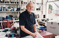 “Potter Emmanuel Cooper’s first solo show was in 1968 and since then he has continued to regularly exhibit his vessels which are characterised by an interest in marrying relatively classic forms to vibrantly coloured glazes and unusual textures. But he also has other interests: he was a founding editor with Eileen Lewenstein, and since 1996 has edited, the highly respected magazine Ceramic Review, he is Visiting Professor at the Royal College of Art and has been awarded an OBE for his services to the arts. However in spite of his writing and teaching activities, Cooper remains at heart a potter, saying, ‘The head, heart and hand literally and metaphorically come together when I’m creating.’”