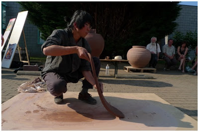 From the site:”The Biennale de la Céramique is a cultural event in Andenne taking place on Sunday and Whit Monday of each even year. The event, was created in 1988 and acquired over time a national and an international recognition. The event wants to revitalize the industrial ceramic history of the city and builds bridges between people and contemporary artists. During the event, and it’s extensions, all the city lives to the rhythm and colors of the ceramic : exhibition of contemporary ceramics in many places, international market of potters & ceramists, artist residency program, lectures, artists demonstrations, master classes, visits of schools, activities for children… all this find it’s proper place in the program. Concentrated around three events and a dozen places in the city, the event organized since 2006 by the Cultural Centre, has strengthened its aspect as a link between the creation and access to art including actions related to ceramics, in conjunction with the Biennale, taking place throughout the year : ceramics courses for children and adults, themed exhibitions, master classes and lectures for professionals are now also on the agenda, reinforcing the Biennale event and giving the city a true character of Ceramics City. The exhibition of contemporary ceramics shows the current trends in contemporary ceramics; the international market of potters and ceramists located on the Chapitre Square, at the foot of Ste Begge’s church, is a real moment for the visibility of the richness and originality of the ceramics of common utility; while the exhibition about the traditional and ethnic ceramics is a focus on the intercultural aspects generated by the practices of ceramics. To ensure and preserve the high artistic level of the works presented and also the novelty, a selection committee choose the participants. So nearly 50 ceramists are selected for the contemporary contemporary exhibition, with a European country often in the spotlight, and nearly 80 participants to the market. The Selection Committee is a guarantee of the variety and diversity of creation considering contemporary aspects, aesthetic, technical and originality of works. The event is also intended as a show place for students of Academies and Art schools of the country, offering to them a special exhibition space, allowing students to present their ceramic creations. There is no doubt that the Biennale de la Céramique is a reference for the professionals and an attraction for ceramics lovers from many countries.”