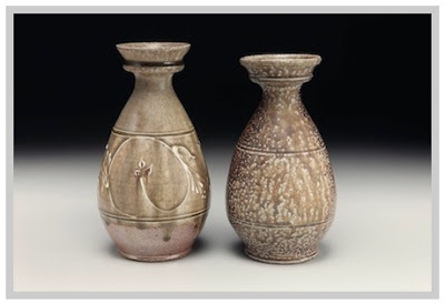 My favorite pots are those made on the good days. It is a joy when the clay, pinched between knuckle and middle finger, seems to rise off the wheel toward the sky with its own momentum and volition. The pitchers in this show were made on such a day: their weight and mass distributed perfectly.