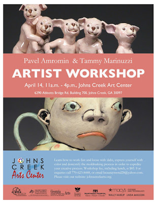 Saturday April 14 from 11am to 4pmPavel Amromin:www.annnathangallery.com/artist8Tammy Marinuzzi:www.tammymarinuzzi.comLearn how to work fast and loose with slabs, express yourself with color and demystify the moldmaking process in order to expedite your creative process.Workshop fee includes lunch.