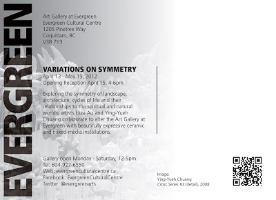 Two ceramic artists, Eliza Au and Ying-Yueh Chuang transform the Art Gallery at Evergreen into a world where structure and symmetry, pattern and proportion define their art work, yet challenge the boundaries of their medium.
