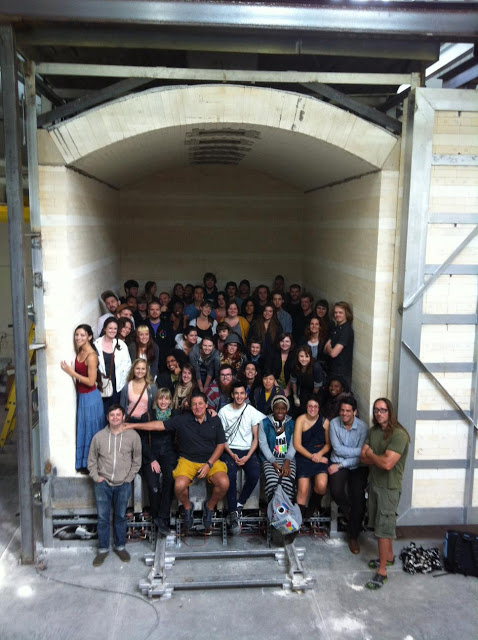 There are approx 50 people in this kiln. The kiln belongs to none other than Jun Kaneko (had to be!)