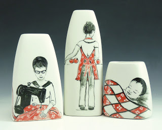 ceramics by Elizabeth Burritt based on a selection of one-line stories, each by