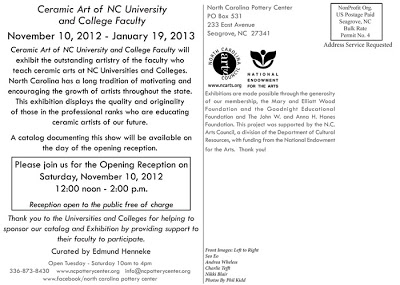 College Faculty,” at the North Carolina Pottery Center. The reception