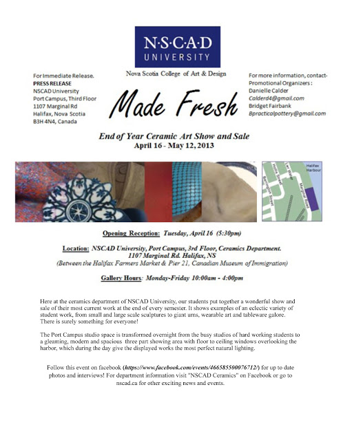 The NSCAD Ceramics department invites you to join us for MADE FRESH our annual spring show and sale.