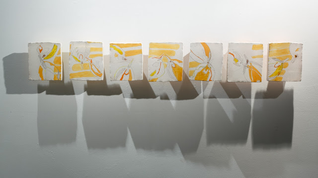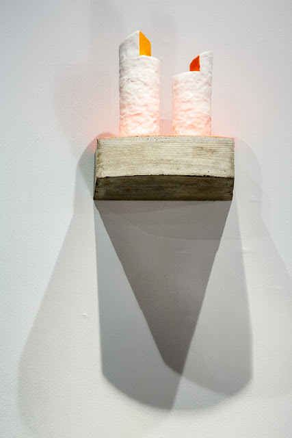 arranged into still lifes; juxtaposing each form with adjacent, brightly colored surfaces that coat each