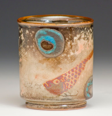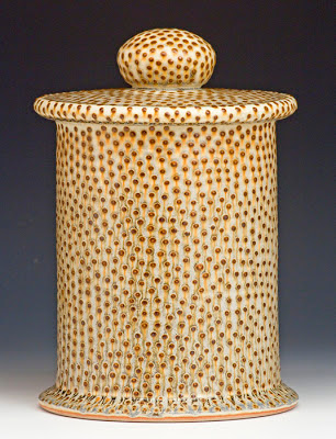 and jar forms. Sometimes his pots are covered with a honey amber color