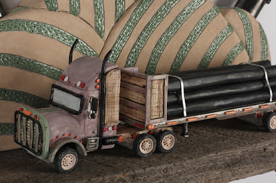 She considers herself a “Mixed Media Sculptor with a sold clay base”, she is currently workout out of Calgary, AB.