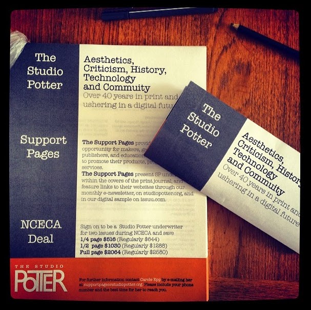 So I’m also as a board member in charge of the Support Pages of The Studio Potter. What’s that you ask? Well the journal is non-profit and thus doesn’t have traditional ads. Instead they have underwriters.