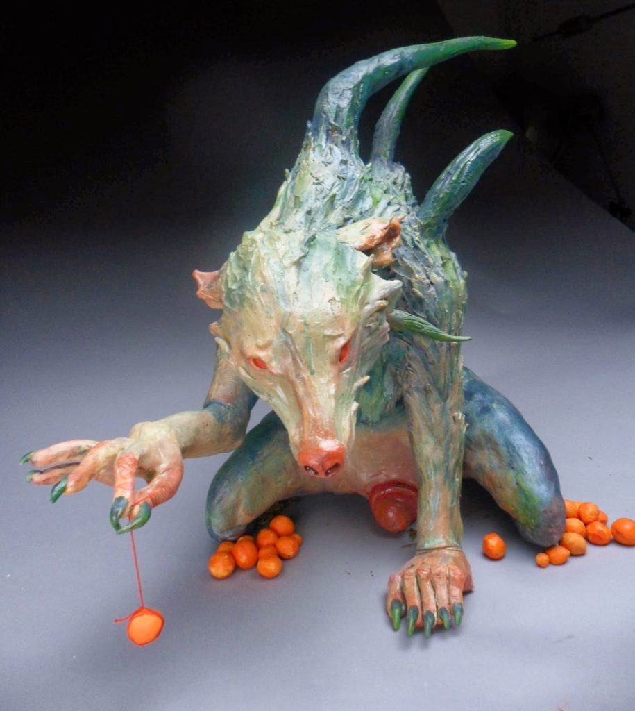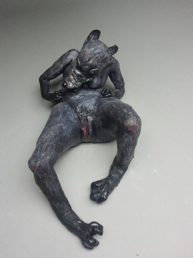 My work is currently exploring Dominant and Submissive personalities in a way that explores sexuality along with storytelling. Who is taking on a role that emits control? Perhaps not whom one would suspect- and what is happening to the forms of these creatures? They are in the process of shifting, of slipping into another identity. Is there a shift in a dynamic where the role that is expected of someone is reversed? What happens to the way they perceive themselves and the way others see them? It also explores emotions that are personal to me, yet universal in experience. Frustration, helplessness, suffocation, love.