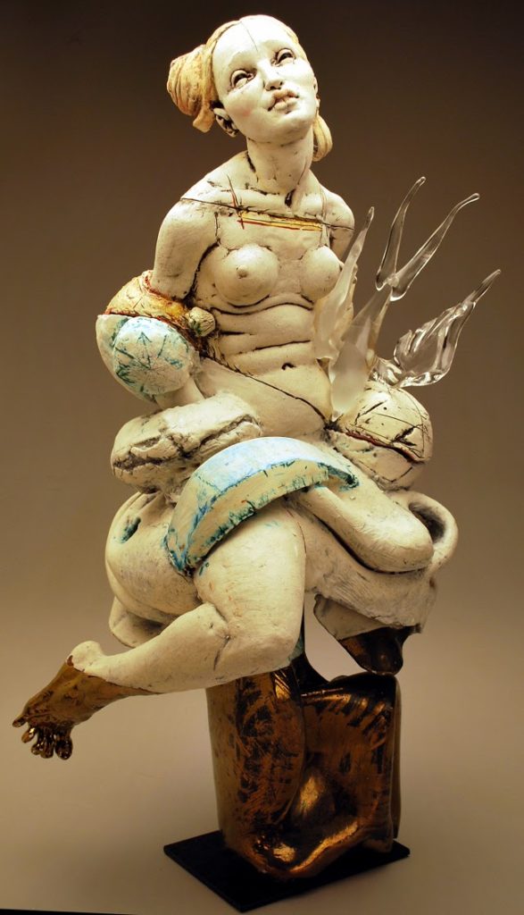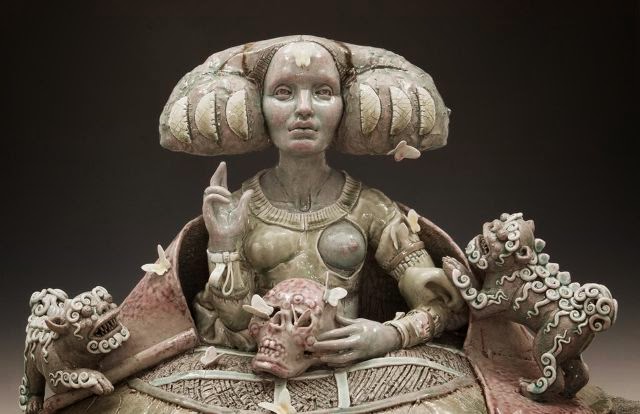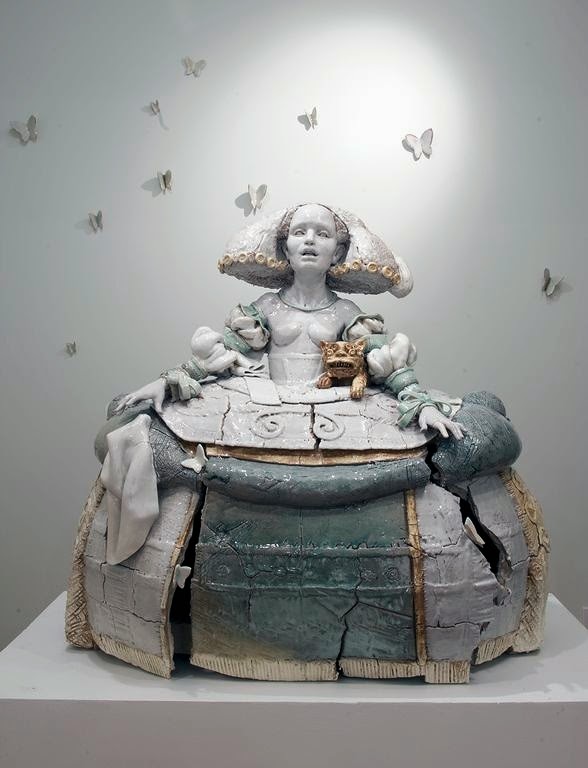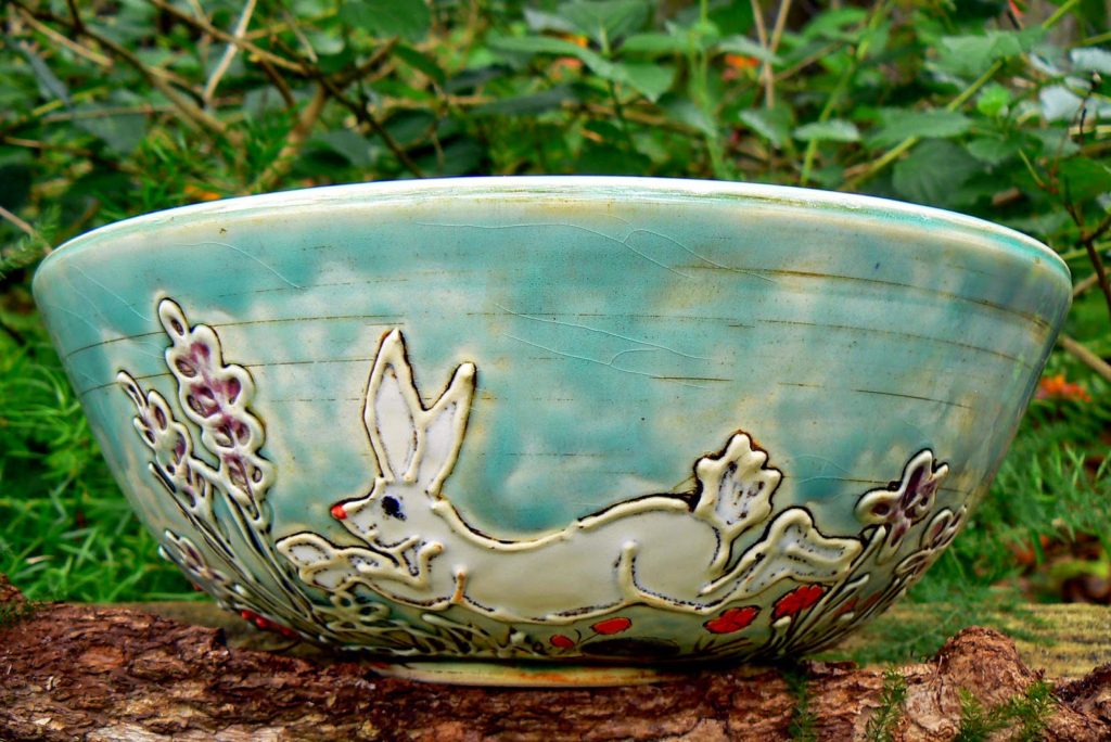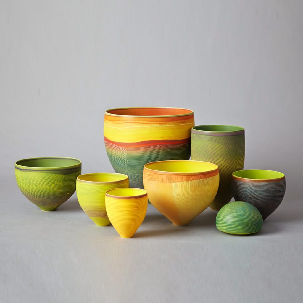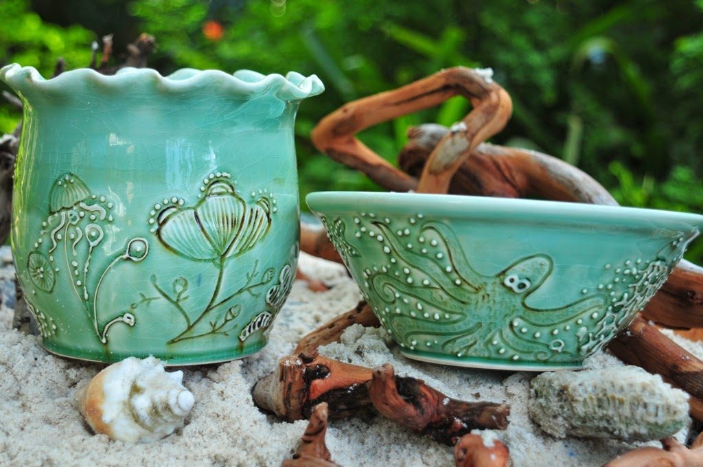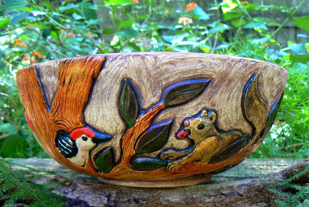 narrative. I use different techniques, each a form of drawing—sgraffito, carving, slip trailing and painting—that