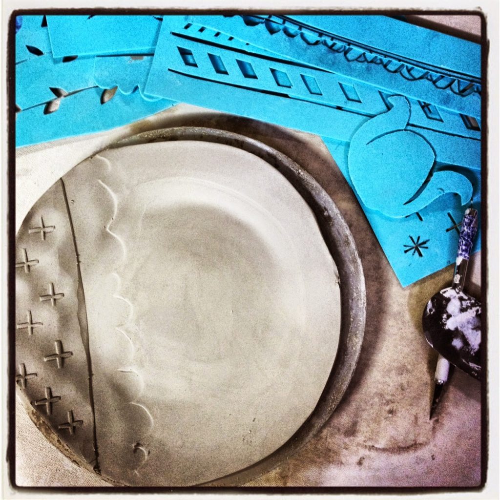 I posted these images on instagram yesturday and received a bunch of questions so I thought I’d included them here today for technical tuesday. Basically what I’m trying to do is add more depth to my functional work, and rather then return to stamps that I had used in the past I wanted to incorporate something that had a less precise or “refined” look to it. A technique that could be used from dish to dish but with different variations complementing how my dishes have unique hand drawn images rather than decals. Stamps to me equate to the same rigid repeativeness of decals. Not that I’m against either, I’m just looking for a different quality for this body of work.