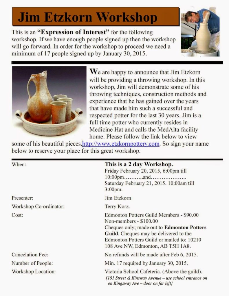 Cheques are to be made out to Edmonton Potters’ Guild and mailed to: