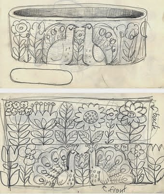 I’m not much of a sketcher. Not much of a planner, well not on paper at least. My sketches are often just stuck in my head. But I love to see behind the scenes of others thought process and planning for projects. So I loved this one by Galia Bernstein, whose an illustrator as well as a clay artist.