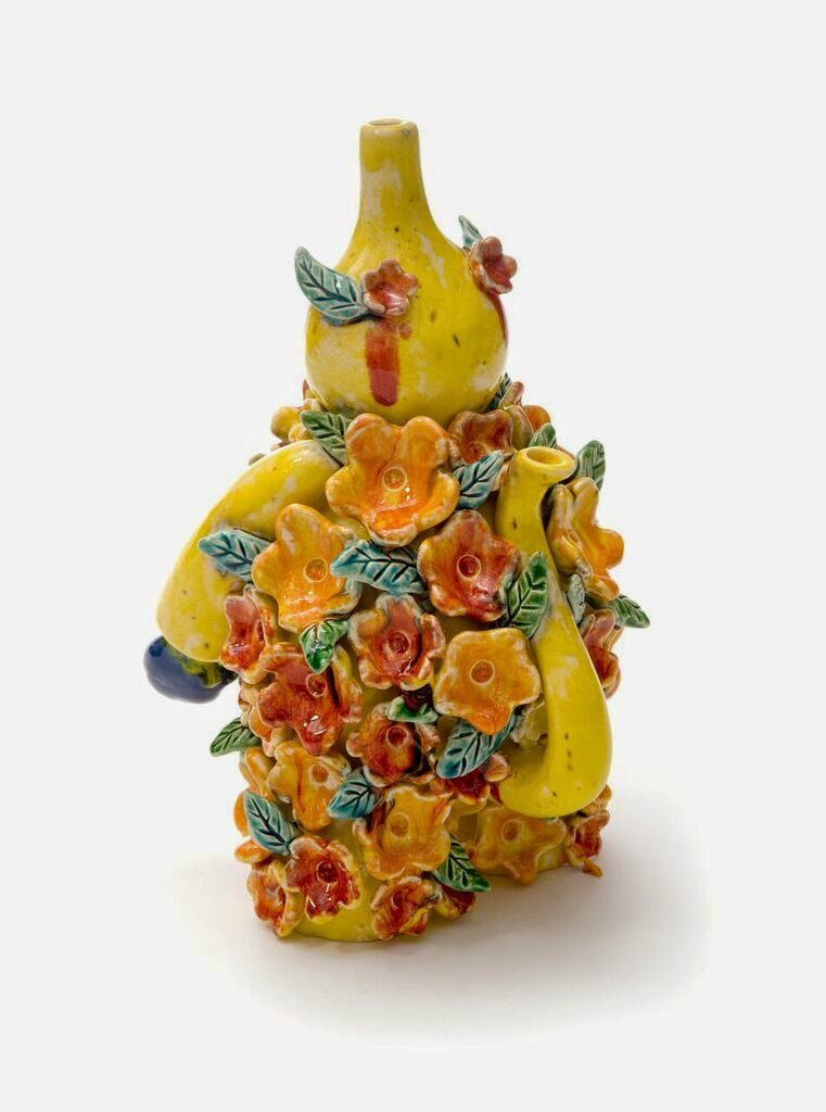 ceramic face pots. Using thrown clay vessels, she will assemble