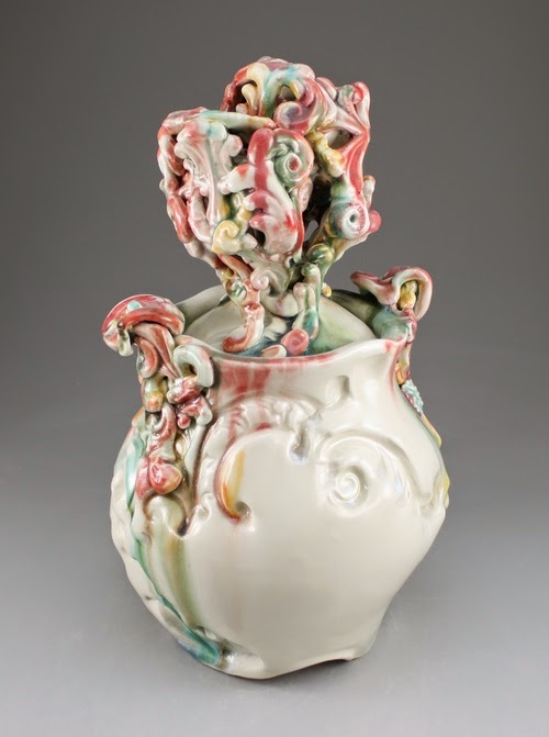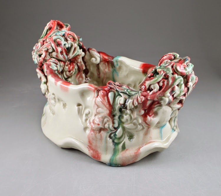 ceramic face pots. Using thrown clay vessels, she will assemble