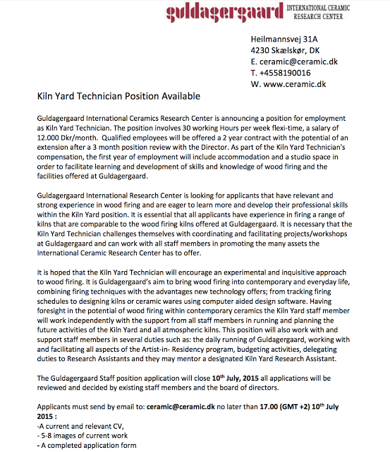 job posting: Guldagergaard International Ceramic Research Center
