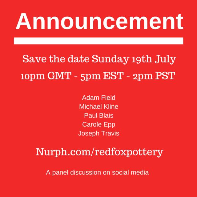 jump through to view and join the conversation; go to www.Nurph.com/redfoxpottery for info. This event is free and open to the public. Tell a friend and we hope to see you there!!!