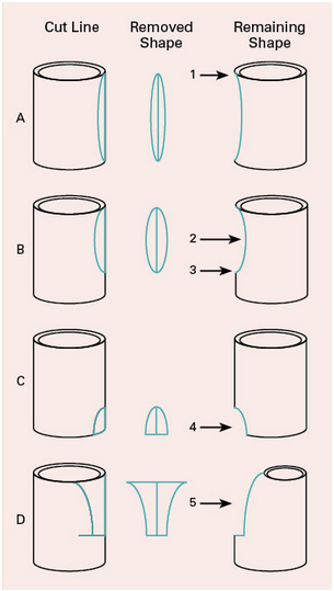Check out the whole tutorial by Deb Schwartzkopf, Pottery Making Illustrated and Ceramic Arts Daily : http://ceramicartsdaily.org/pottery-making-techniques/handbuilding-techniques/guidelines-for-altering-straight-sided-cylinders/