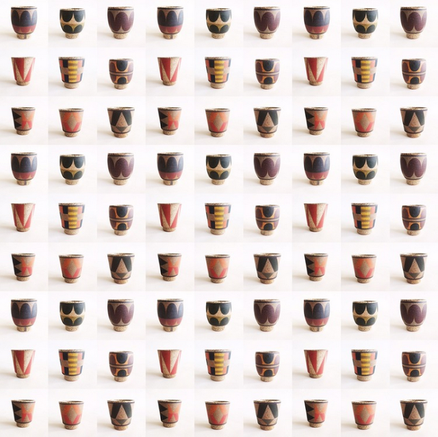 Cups must be made primarily of clay. The idea of cup may be interpreted freely.