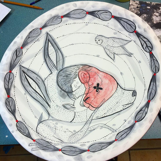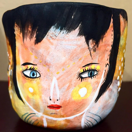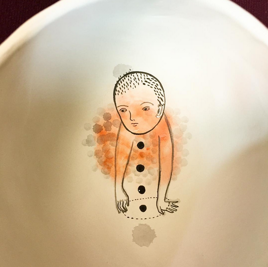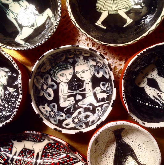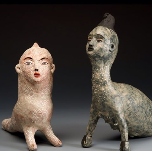 In the same way storytelling is rooted in folk tradition, I approach my artwork as an adaptation of traditional folk ceramics. I create figures in a gestural way, leaving the mark of my hand and using a loose-hand built method of construction. When thinking of a composition I pull influence from the Muromachi period of Japanese Suibokuga. The loose and gestural scroll drawings provide a much-needed harmony to the rough material and surfaces of the ceramic pieces.