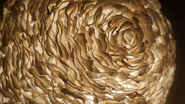 platters, vases and porcelain chandeliers are connected, sometimes by
