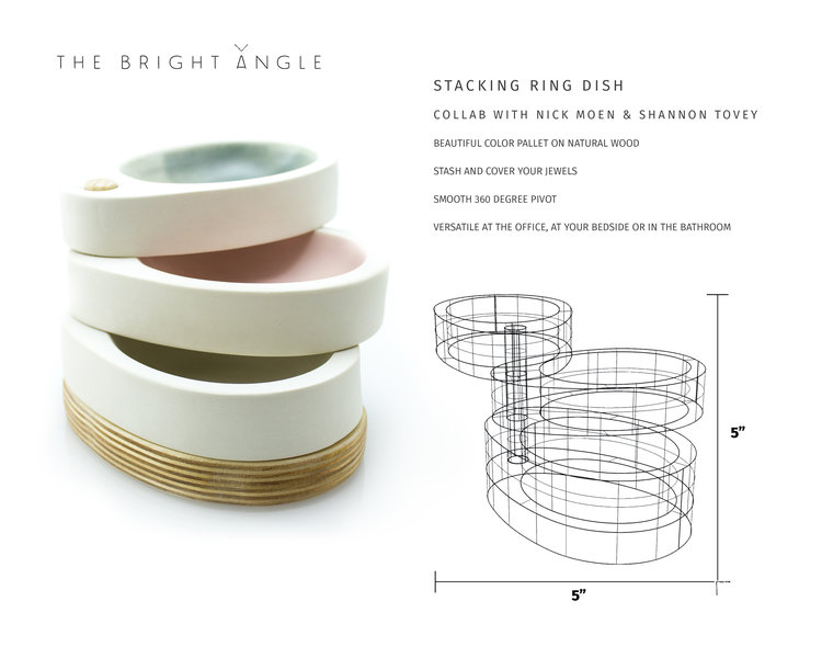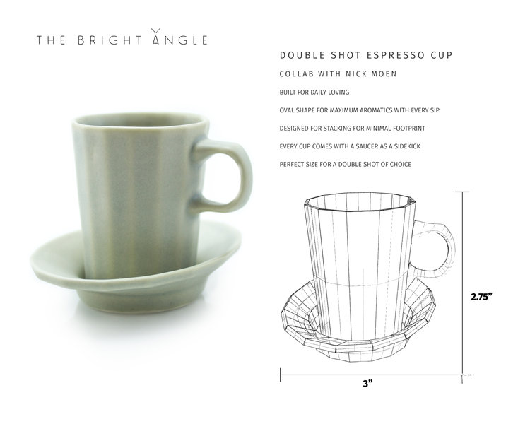 “The goal is to bridge a gap between studio artists and the design marketplace. I believe the best way to execute this is by creating efficient systems of well-designed handmade objects where the production process is taken into consideration when designing the original model. In order to execute the prototypes for our first collaborative collection, we utilized the Asheville Maker’s space, our neighbors at The Refinery, to 3D print models for slip-cast porcelain mold systems. Beyond that, our collaborations in Asheville have involved working with local glassblowers, leather workers, printmakers, photographers, candle makers and other ceramic artists. This is why The Bright Angle is starting in Asheville, because the creative community is full of masters of their craft and in my experience we are all here to grow together.“- Nick Moen