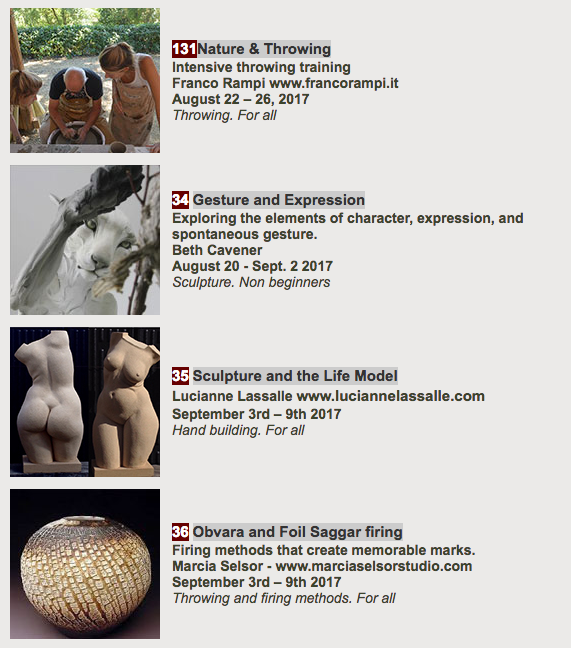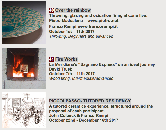 Full details here: http://www.lameridiana.fi.it/ceramic_courses_programme.htm
