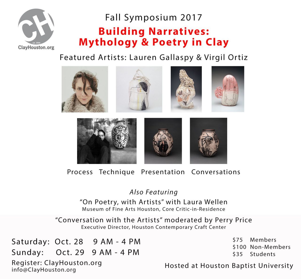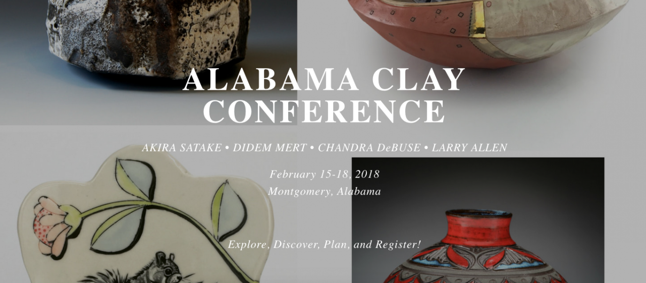 February 15-18, 2018, Montgomery, AL. Diverse, delightful presenters and workshops: Akira Satake, Chandra DeBuse, Didem Mert, Larry Allen. Interactive raku firing, brick carving, photography, glaze adjusting, altering forms and surfaces.