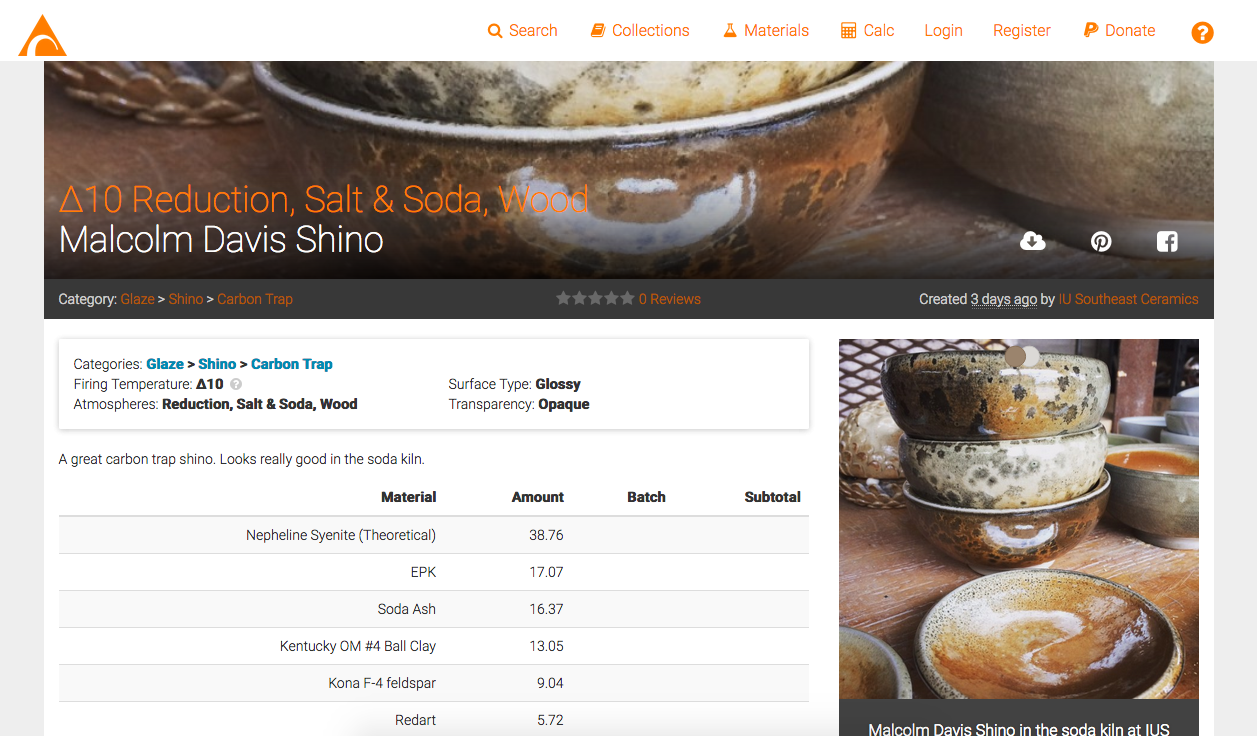 Derek Au has created an amazing resource for the community. Check it out, find some new glazes to play with and contribute your own recipes.