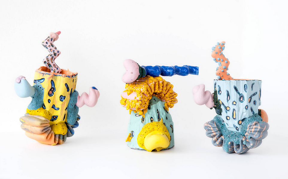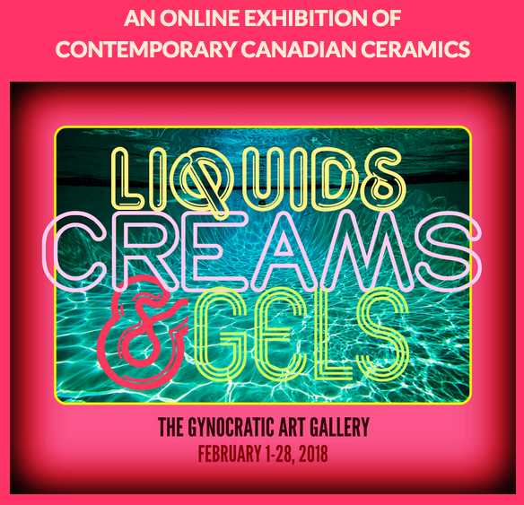 “Liquids, Cream and Gels,” as you know, is what they ask you to present while passing through the security line at the airport. Well, we are taking that concept to a whole new level by infusing it with ceramic notions of love and other potions and making it for the basis for a show. The curated online show of Liquids, Creams and Gels shall coincide with the frigid month of February that we North Americans dedicate to the complete range of noble to ignoble notions of amour. This exhibition will be ever-so-loosely centered around the time old tradition of vessel-making and containment that we, as ceramic artists, seem to embrace with open, wet and muddy arms. Beyond that it is our hope that the combined concept of vessel + containment + relationships is taken to a whole new level by the participating artists. There is no safety net or zone here…predictable is not welcome, but subversion is a most welcome entity. It is time to explore galore and push the notion of lotions and potions to the limit and make something that addresses this thing called “amorous” and turn it into something deviously glamorous. So please feel free to liberally apply to your eyeballs and sensory spots, this curated lotion of Canadian Ceramic artists both emerging and established…we’re sure their work will heighten your art viewing experience.