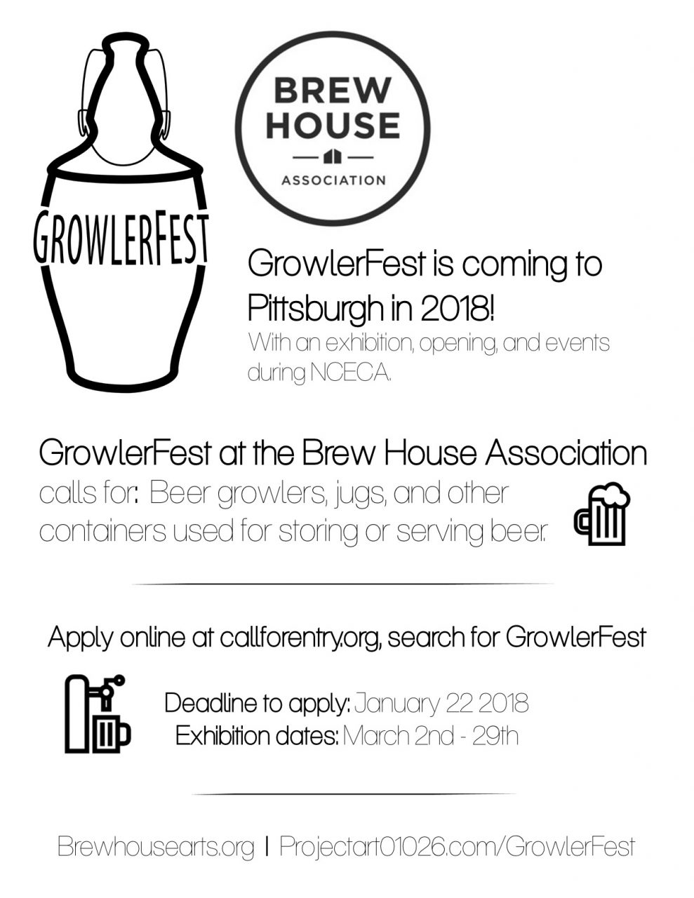 GrowlerFest connects artists to the craft beer movement by showcasing the ties between local food, craft beer, and ceramics. It’s goal is to create a “cross current” link between the craft brewery movement and the vitality of handmade pottery. Through the intersection of collaboration and individual aesthetic, we hope to spark investment in handmade objects among a group of people who share a common interest. The enjoyment of food and drink can be greatly enriched by the experience of using the beautiful work artists so thoughtfully produce.GrowlerFest is partnering with the Brew House Association (BHA), which provides a wide range collaborative spaces, programs, and people in order to encourage the pursuit of artistic excellence. The BHA has emerged as a place where code writers mix with sculptors, artists evolve into entrepreneurs, and citizens from Pittsburgh’s South Side, Hilltop, and Mon Valley come to be creative. A former brewery located near Pittsburgh’s cultural district, it presents the perfect location for an exhibition centering on its historical purpose and contemporary identity.The exhibition will be comprised of two components, one being juried growlers from artists who answer an open call for entry, and another being growlers made by an invited list of artists. We will pair these two components in order to create a multi-faceted exhibition which fosters a particular aesthetic while sparking interest in the growler as a form. The events will feature beer tasting and local food and will be free and open to the public during the NCECA Conference.The public is invited to an exhibition and social gatherings centering on the beer growler.