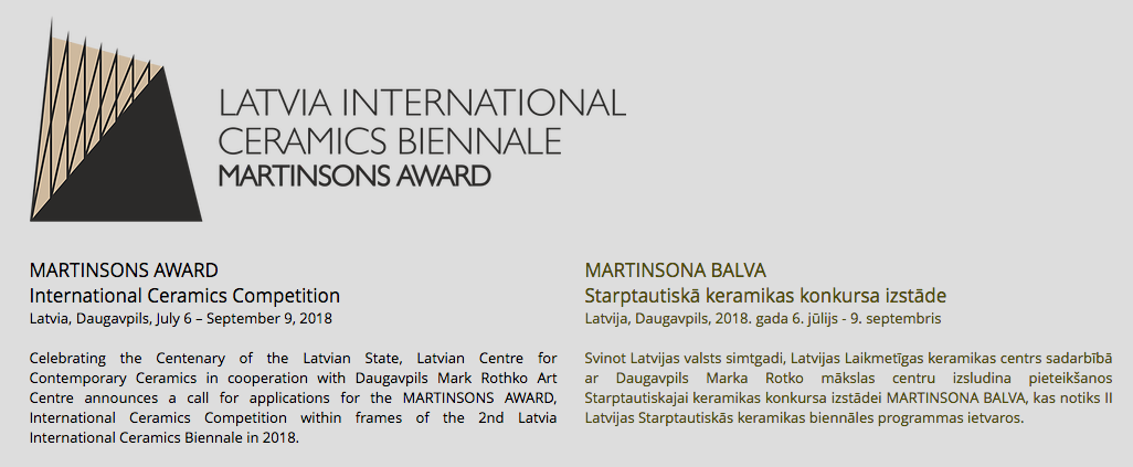 Individual artists, as well as groups of artists, are invited to submit their artworks for the MARTINSONS AWARD International Ceramics Competition. The applicants are not restricted by age or nationality. Each applicant (individual artist or a group of artists) can submit only one artwork. Artists awarded with Gold, Silver or Bronze prizes in both National and International categories during MARTINSONS AWARD Competition in 2016, cannot participate in the Competition in 2018.