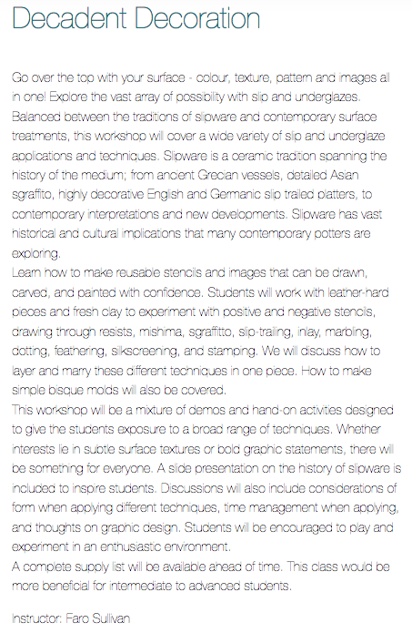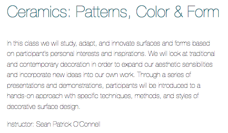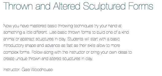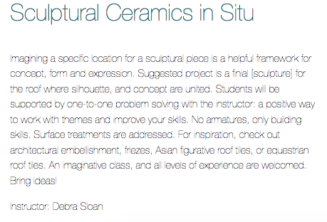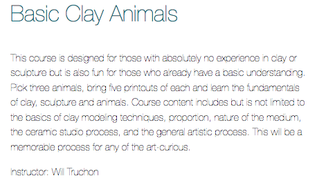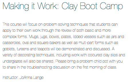 Here are the clay courses offered but there are many other interesting nonclay courses to take as well.